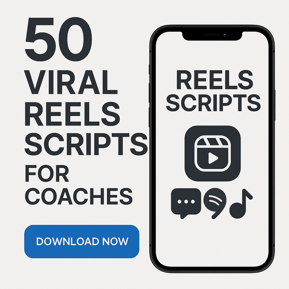 50 done-for-you Instagram Reels scripts built for coaches. Hook-driven. AI-powered. Ready to post. Turn content into clients — without spending hours writing.